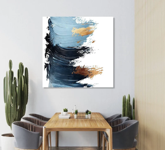 The Handmade Painting with Blue, Gold & Black Paint also makes an excellent gift for art lovers, housewarmings, anniversaries, corporate gifting, or festive occasions. Perfect for those who appreciate bold color contrasts and handmade artistry, this painting is more than décor—it’s a refined expression of creativity, elegance, and modern artistic vision.