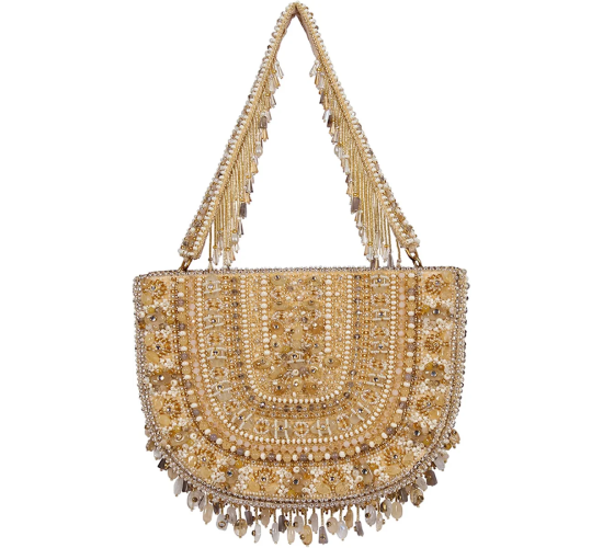 Designed for special moments, this handbag complements ethnic outfits like sarees, lehengas, anarkalis, and fusion wear. The sturdy handle ensures a comfortable grip, while the detailed craftsmanship makes it a standout piece in any collection.