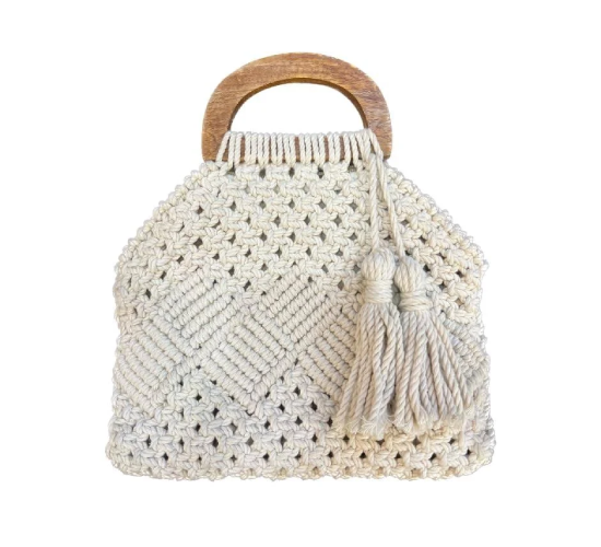 Women’s Handmade Macrame Fashion Bag. Beautifully handcrafted by skilled artisans, this stylish bag showcases the timeless art of macrame knotting, transformed into a modern fashion accessory. Designed for women who love unique, handmade products, this bag perfectly blends tradition with contemporary style.